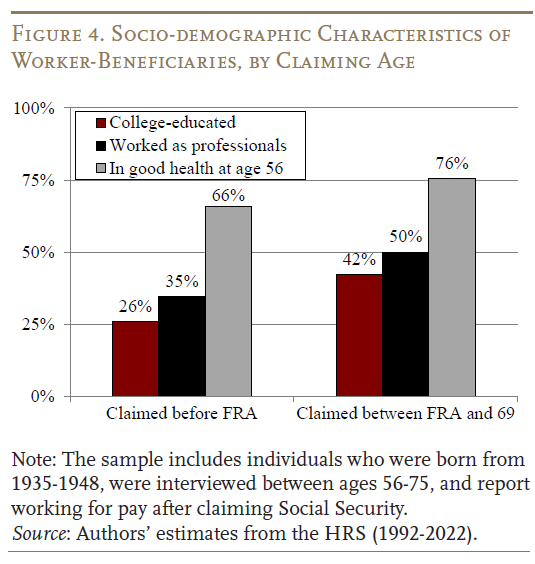 • The rest are higher earners who often work full time after claiming near the full retirement age, suggesting they may be able to further delay claiming.